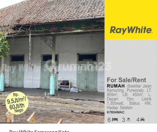 AA004 Bangunan lawasan di atas tanah 1063m2 di Kota Kabupaten Purworejo, bisa dijadikan pilihan untuk para investor yang mengembangkan usaha di bi...