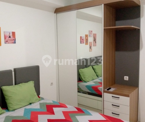 Apartemen 2 BR furnish luas 42 m² Terdapat 2 kamar tidur dan 1 kamar mandi, ruang tamu, smart TV...