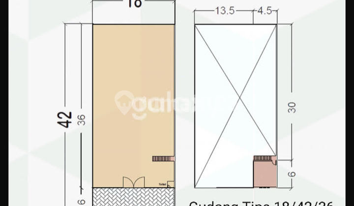 Jalan Utama kompleks ▪️Gudang LT / LB 630 m² = 15 x 42 Lantai COR HGB