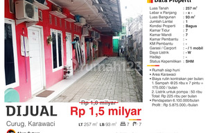 Dijual Kost kost an & ruko Dekat Mos, Uniba & Untirta Luas tanah 381m2 Luas bangunan 500m2 Ada 17...