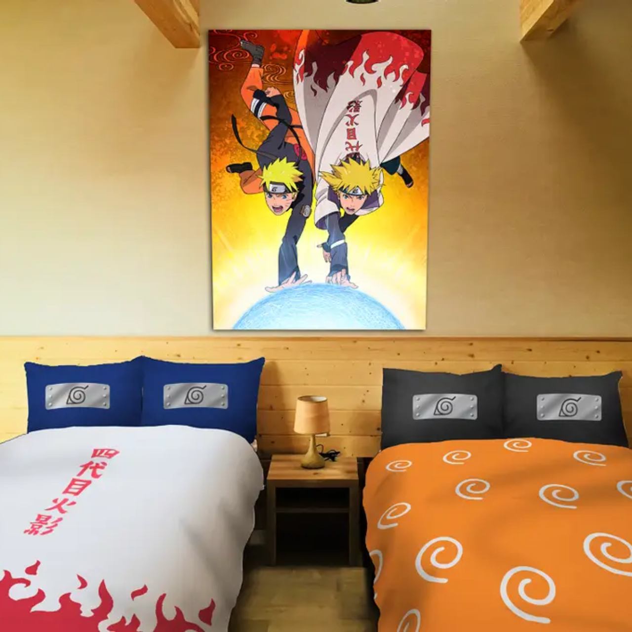 Hiasan dinding bergambar Naruto dan Minato menambah makna emosional sekaligus estetik.