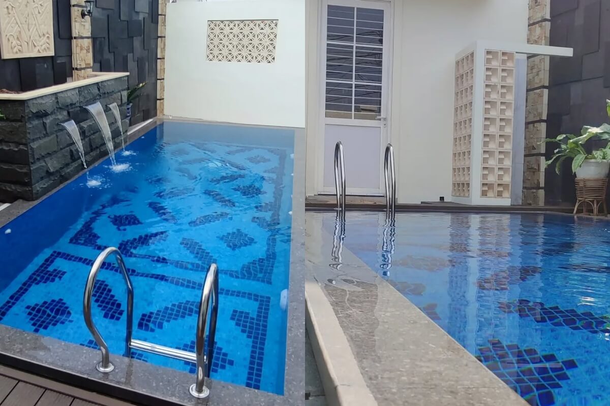 Biar lebih estetis, pemilik kolam juga menambahkan akses dekorasi pada dinding dan deck-nya.