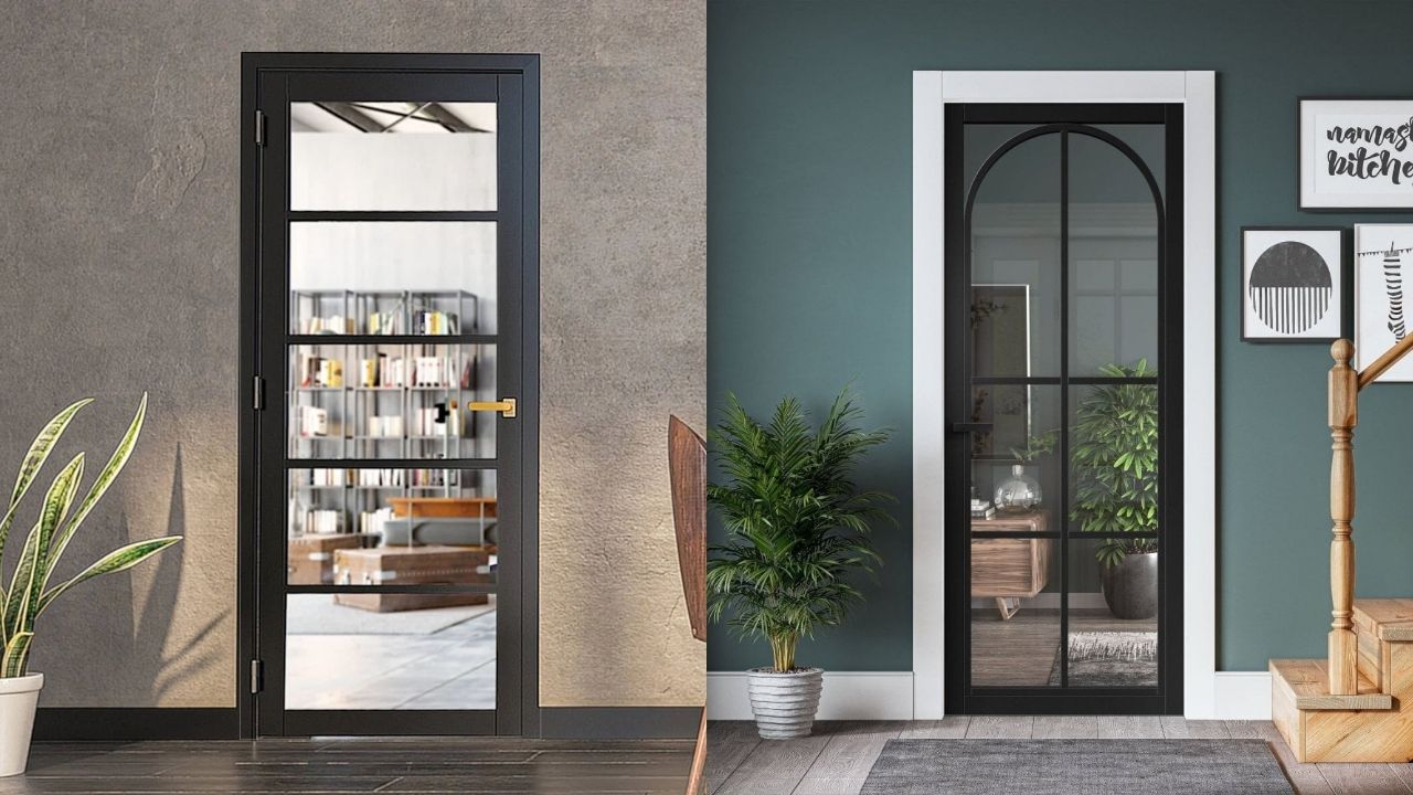 4. Pintu Kaca dengan Lengkungan Klasik dan Bingkai Hitam