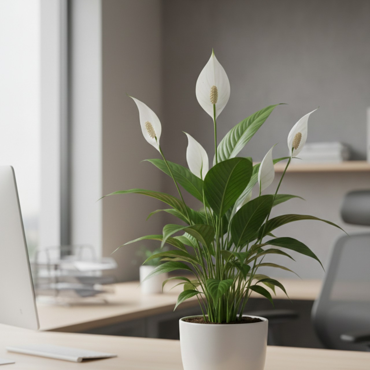Peace lily menjadi pilihan tepat bagi kantor yang menginginkan sentuhan bunga alami.