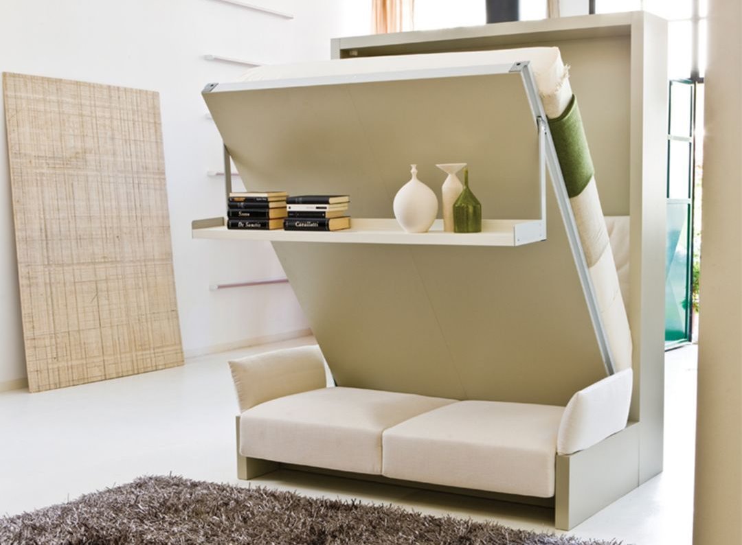 Selain dipakai untuk tidur, furnitur ini bisa dilipat ke atas dan menjadi sofa untuk bersantai sambil membaca buku.
