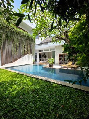 Elegant Freehold Modern Villa - Balangan, Jimbaran A beautiful multi-level freehold villa featuring a modern minimalist open-plan design, seamlessly blending contemporary comfort with local architectural elements. Floor-to-ceiling frameless folding glass doors allow the living areas to open fully or be securely enclosed as desired. Finished with top-quality materials, fixtures, and appliances throughout, including high-end functional systems. Key Details: Land Size: 400 sqm Building Size: 391 sqm 4 bedrooms with en-suite bathrooms 1 maid's room with en-suite bathroom 1 powder room Modern open-plan kitchen with full appliances L-shaped infinity swimming pool (9 x 5 m) Covered carport for 2 cars Features & Facilities: Electricity: 13,200 watts PDAM water supply + 12 m³ ground tank Fiber optic internet (Indihome) Air conditioning in all rooms Solid teak parquet flooring on bedrooms and upper floors Automatic remote gate, CCTV, ample storage Prime Location: Jl. Lalang Ambu, behind Puri Gading - near Asian International / Gandhi School 10 minutes to Balangan & Jimbaran Beach 5 minutes to GWK, 20 minutes to the Airport Price: IDR 7.8 Billion