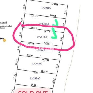 LAND FOR SALE FREEHOLD LOCATION Jln Pantai Balangan - Jimbaran, South Kuta, Bali Only 3 minutes from beach Surrounded by Villas & Hotels **Details : * Land size 291 m² * Width Frontage 9,9 meter/ - Tourism Zone Pink - Road access 7 meters - Certificate HGB , Can Convert to SHM / Hak Milik for Indonesian Citizen **Asking Price IDR 75000000xxxx m2 NETT ( Or Total IDR 2,182,500,000 NETT )