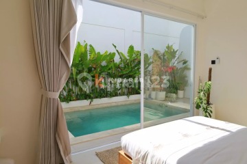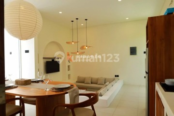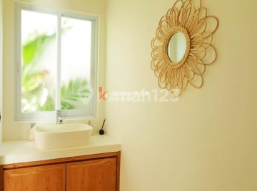 This stylish two-storey villa in Uluwatu combines comfort and functionality just moments from the famous Uluwatu Beach. Built on 150 sqm of land with a 75 sqm building, it features two fully furnished bedrooms with private bathrooms, plus a guest toilet for convenience. The enclosed living room with a unique sunken sofa connects seamlessly to the dining area and kitchen, creating a cozy yet modern space for daily living. A private swimming pool completes the ground floor, perfect for cooling off after a day at the beach. Additional highlights include a spacious rooftop accessible via an outdoor staircase, ideal for entertaining, sunset views, or simply relaxing. Equipped with AC, TV, WiFi, and secure parking for one city car and motorbikes, the villa offers both comfort and practicality. Pets are welcome, making it a flexible choice for families or couples, with rental options available for both monthly and yearly stays.