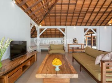 This amazing real estate with spacious land is located in a peaceful area of Berawa. This marvelous villa features 3 spacious, comfortable and cozy bedrooms with 4 classy bathrooms. It is fully furnished in a expensive taste with great furnishing and interior providing chic luxury and comfort. This property generously offers 3 AC units, spacious living area, spacious dining area, modern kitchen, swimming pool 8 x 4 m, stunning gazebo, separate space for storage, water source from well, electricity 13.200 W, internet, parking area fit for 1 car and a beautiful garden in the house. This is a great investment option available for sale in a prime area of Bali. Ideal to buy as a home or as an investment that can generate good return. 8.6 are of land with 1.4 are of access land. Just 5 minutes away from the beach and hardly 25 minutes away from Ngurah Rai Airport.