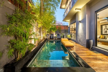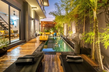Stunning ROI two-bedroom villa, located in the heart of the fashionable Berawa neighborhood. This charming villa offers a peaceful retreat from the bustling city, surrounded by breathtaking views of lush green rice fields. As you step inside, you will immediately feel at home with the elegant yet cozy interior design. The living area is filled with natural light, featuring comfortable sofas and a large flat-screen TV, perfect for a relaxing evening in. The kitchen is fully equipped with modern appliances and a stylish dining area, making it ideal for preparing and enjoying delicious meals with loved ones. The villa boasts two beautifully decorated bedrooms, each with its own en-suite bathroom. The location of the ROI villa is unbeatable, just a short walking distance from the popular Atlas and Fins Beach Club. You will have access to some of the trendiest spots in Bali, including an array of cafes, restaurants, and shops. In summary, the ROI two-bedroom villa is a charming and stylish retreat that offers a peaceful escape from the busy city, surrounded by breathtaking views of the rice fields. It is perfect for couples or families seeking a memorable stay in Bali, with all the necessary amenities and an unbeatable location in fashionable Berawa.