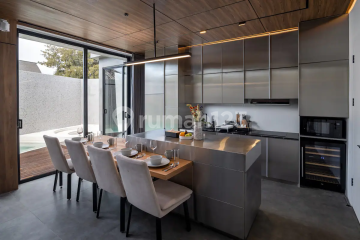 Nestled in the vibrant heart of Batu Bolong, Canggu, this exquisite LEASEHOLD villa offers a harmonious blend of luxury and comfort, with its lease valid until 01-01-2047, including an option for extension. Spanning a generous land area of 174 square meters, the villa boasts a spacious building size of 193 square meters, thoughtfully designed to create an inviting and warm atmosphere. The villa features two elegantly appointed bedrooms and two well-designed bathrooms, offering the perfect retreat for relaxation and privacy. The rooftop terrace presents a serene escape, ideal for unwinding or entertaining guests while soaking in the stunning surroundings. Central to the villa's leisure facilities is a magnificent swimming pool, complete with a sunken sitting area and a cozy fireplace, creating an enchanting ambiance for both daytime and evening enjoyment. The enclosed living area provides a tranquil space for relaxation, seamlessly blending with the outdoors. Culinary enthusiasts will be delighted with the fully equipped kitchen, which includes a built-in microwave and a sophisticated wine chiller, making it perfect for hosting dinner parties or intimate gatherings. The villa also features a convenient powder room and ample storage space, catering to all practical needs. Embracing modern technology, the villa is equipped with a state-of-the-art smart home system, ensuring comfort and convenience at your fingertips. Residents also have access to a shared pool and a co-working space, perfect for blending work and leisure in a communal setting. Security is paramount, with 24/7 security services ensuring peace of mind. Additionally, the villa offers parking facilities, adding to the convenience for residents and guests alike. This villa in Batu Bolong, Canggu, is a rare gem, offering a blend of luxury, comfort, and modern conveniences, all set in one of the most sought-after locations. Its leasehold ownership, with an option to extend, makes it an attractive investment or a dream home for those seeking a sophisticated lifestyle in Bali. PRICE : Reduced from IDR 7.420.000.xxx to IDR 6.520.000.xxx