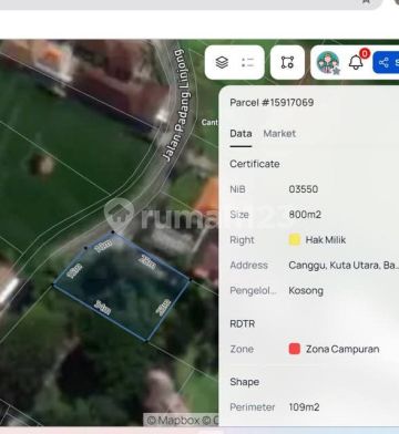 For Sale Freehold Land in Padang linjong Canggu Very strategic location , great for Restaurants, Villas or Private Property.. Land size 8 are / 800m2 Front size is 25 Meters SHM ( Freehold) Main road access Aspects for accommodation Price 2.5 Billion Are / 100m²