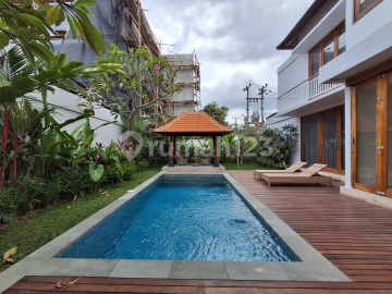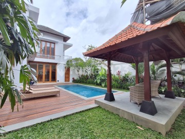 easehold Villa for Sale - Tumbak Bayuh, Canggu Located in the tranquil area of Tumbak Bayuh, Canggu, this villa offers a peaceful residential atmosphere surrounded by lush greenery. It is conveniently positioned just 15 minutes from Pererenan Beach, 20 minutes from Batu Bolong Beach, and around 50 minutes from Ngurah Rai International Airport. The location provides easy access to cafés, restaurants, and international schools while remaining calm and private. Built on 425 m² of land, this Balinese-style villa features a spacious garden, a 3.5 x 7 m swimming pool, and a relaxing gazebo. There is also a garage for secure parking and a storage room for added convenience. The villa's tropical architecture and landscaped outdoor area create a serene living environment. The villa offers 271 m² of living space with three bedrooms, three bathrooms, and a guest toilet. It also includes an office room, ideal for remote work or creative activities. The interior blends traditional Balinese design with comfort, featuring a furnished living area, a fully equipped kitchen, and a balcony overlooking the garden and pool. Additional Information Leasehold: 25 years Land size: 425 m² Building size: 271 m² Swimming pool: 3.5 x 7 m 3 bedrooms 3 bathrooms Guest toilet office room Furnished Gazebo, storage room garage Zoning Yellow Leasehold 25 years Asking Price:IDR 5.000.000.xxx BALIMMO PROPERTIES - Contact us to schedule a visit.