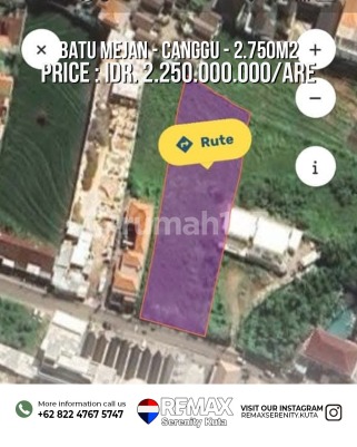 DETAIL PROPERTI - Luas Tanah: 27,5 Are (2.750 m²) - Lebar Depan: 28 Meter - Kedalaman: 94 Meter - ITR: Campuran & Wisata - Tanah Datar - Akses Jalan: 6 Meter - Status: SHM / Freehold - Hanya 3 Menit ke Pantai - Walking Distance ke Café & Restaurant ⸻ POTENSI PENGEMBANGAN Cocok untuk: - Private Villa Complex - Mini Hotel - Resort - Beach Club - Restaurant / Commercial Project Area Echo Beach sangat terbatas untuk lahan besar High capital gain & premium commercial value Harga: IDR 2.500.000.xxx / Are - NEGO