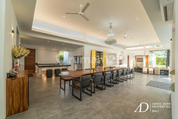 Residential Zone | Western Build | Turnkey Move- In Ready Ideally located just minutes from Batu Bolong, Echo Beach, and central Canggu, this exceptional freehold villa offers a relaxed yet sophisticated lifestyle in one of Bali' s most sought- after residential neighborhoods. Situated in the peaceful community of Babakan, the property is near international schools, renowned restaurants, gyms, and world- class beach clubs, making it perfect for families or long- term investors. Set on an expansive 1, 560- square- meter lot and featuring a 466. 15- square- meter building, this elegant single- story villa was designed by renowned German architect Oliver Gehlen and completed in 2018 to high Western construction standards. The design emphasizes quality craftsmanship, premium materials, and seamless indoor- outdoor living. The villa has five spacious bedrooms, including a grand master suite with an ensuite bathroom and walk- in wardrobe, three large ensuite bedrooms, and a separate guest pavilion for added privacy. The generous living and dining areas open directly to beautifully maintained tropical gardens and a 12 x 3 meter swimming pool, creating an ideal space for everyday family life and entertaining. Additional features include an outdoor BBQ area, guest powder room, two designer kitchens (dry and wet) with high- end appliances, a game room or study, bar area with wine fridge, maid' s room with ensuite bathroom, laundry space, and a secure garage for 2-3 cars and motorbikes with extra storage and utility space. A covered terrace and lounge area offer the perfect setting for outdoor dining, morning coffee, or sunset gatherings. Tastefully furnished and fully equipped, the villa features modern lounge furniture, a long dining table overlooking the pool, flat- screen TVs, a surround- sound system, high- speed Wi- Fi, and full air conditioning throughout, making it turnkey and move- in ready. With its freehold title, large land area, peaceful residential environment, and close proximity to Canggu' s lifestyle centers, this property provides a rare opportunity to own a top- quality family home or make a stable long- term investment. Price: IDR 29,000,000.