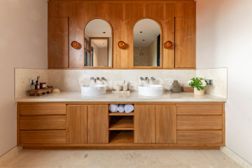 Discover refined tropical living in this modern family villa located in the peaceful residential area of Babakan, Canggu. Sitting on 400 sqm of land with an equal 400 sqm of build, this brand-new home is designed to deliver comfort, style, and long-term durability. Developed by an Australian team, the villa uses premium natural materials and meets high construction standards. The design blends modern sophistication with warm Balinese elements, featuring acid-wash marble flooring, natural wood accents, and soft broken-white walls. Neutral tones throughout the home create a bright, calming, and timeless atmosphere. The ground floor offers an expansive open-plan living and dining area, a dry kitchen, a large butler's pantry, a private office, a cinema room, a guest powder room, and a dedicated laundry space. One spacious ensuite bedroom opens directly to the 12.5-meter saltwater knife-edge pool, sun terrace, and outdoor dining area. The property also includes ample parking for multiple vehicles. On the upper level, three extra-large ensuite bedrooms provide generous natural light, built-in wardrobes, and thoughtful cross-ventilation for year-round comfort. Storage has been carefully planned throughout the home to support everyday family living. Additional features include a 23,000VA power supply, ground-water well, full furnishing, and a 12-month construction warranty. The villa comes with 29 years of leasehold and a fixed 30-year extension option, offering long-term security in a highly desirable Canggu location. Leasehold until October 2054 Price: IDR: 14.000.000.xxx Contact us for further details and inspection!