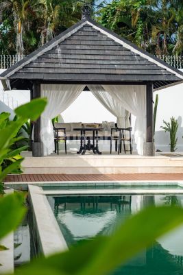 MODERN MEDITERANIAN VILLA FOR SALE IN BERAWA, CANGGU, BALI. FREEHOLD PRICE USD $1,000,000 Negotiable -Land area: 528 m2 -Building size: 555 m2 -4 luxurious bedrooms + 4 bathrooms -Biliard/entertainment room for fun and games -Modern kitchenette for culinary enthusiasts -Refreshing swimming pool -Cozy balebale sitting area -Outdoor living near pool for relaxation -Covered garage for secure parking -Powder room for added luxury -Laundry area for practicality -Maid room + bathroom for comfort 70n.4