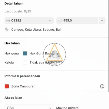 FREEHOLD / LEASHOLD Dijual tanah yang jarang ada luasan kecil dicanggu Batu bolong * Luas tanah : 4,55 are /455 m² * Lebar depan : 28 meter * ITR Zona campuran * Hadap utara * Lingkungan villa * Jalan 4 meter * Lokasi siap bangun Harga : IDR 1,95 Miliar / are / 100m² Leashold 25 tahun IDR 43Jt / are / Tahun