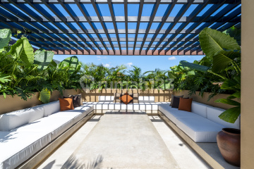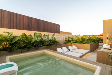 Modern 4-Bedroom Villa in the Heart of Canggu Centrally located in Canggu, this brand-new villa is within walking distance to the beach, Finns Beach Club, Atlas Beach Club, Canggu School, supermarkets, restaurants, and shops. The property also offers easy access to other popular areas: 10 minutes to Batu Bolong, 15 minutes to Seminyak, and 45 minutes to the airport. Built with a modern design, the villa features a private swimming pool, rooftop with BBQ area, and secure parking. The property is fully equipped with CCTV for added security. Set on 214 sqm of land with a 350 sqm building size, the villa is designed for comfort and functionality. It comes fully furnished with modern finishes and includes: 4 bedrooms with en-suite bathrooms (total 5 bathrooms) Closed living rooms Modern kitchen with full equipment Wi-Fi and Smart TV Storage room Property Details : Land size: 214 sqm Building size: 350 sqm Bedrooms: 4 Bathrooms: 5 Swimming pool Rooftop with BBQ area Closed living rooms Fully furnished kitchen equipment Wi-Fi and Smart TV CCTV Storage room Parking area Zoning Pink - Leasehold 28 Years , Permit ( SLF ) Asking Price : IDR 12.000.000.xxx BALIMMO PROPERTIES - Contact us to schedule a visit.