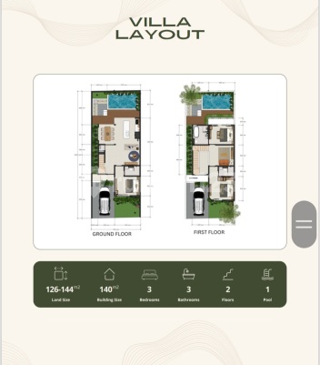 DE CANGGU VILLAGE Dukuh, Dalung - dekat area Padonan Kompleks properti yang terdiri dari 9 unit villa dan 3 unit ruko, berlokasi strategis di kawasan berkembang Dalung - Canggu. Lokasi sangat dekat dengan berbagai fasilitas penting: Dekat Monarch Cruise School Sekitar 8 km ke Pantai Berawa Sekitar 8 km ke Finns Beach Club Detail Properti Total unit: 9 Unit Villa 3 Unit Ruko (Shophouse) Villa Luas tanah mulai: 127 m² Luas bangunan mulai: 140 m² Status: Freehold / SHM Harga mulai: Rp 3,1 Miliar Ruko (Shophouse) Luas mulai: 127 m² Harga mulai: Rp 2,565 Miliar mnk