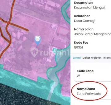 Tanah dijual 90 are los pantai cemagi akses jalan 4 meter zona pink kawasan pariwisata cocok dibangun hotel,resort dan villa. harga 1,7 milyar/ are