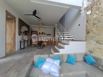 Annual Rental Price: IDR 300,000,000 / Year Monthly Rental Price: IDR 30,000,000 / Month Secure this brand new (Built 2025), fully furnished 2-bedroom villa in the quiet coastal area of Cemagi. This stylish two-storey property offers premium finishes, a private pool, and the standout feature of a rooftop terrace with a stunning rice field view, perfect for sunset enjoyment. The villa's design is modern and bright, incorporating unique features like floating staircases, natural stone accents, and glass walls that open onto the outdoor area. Size: 150 sqm Land / 175 sqm Building Layout: 2 Bedrooms, 2 Bathrooms, Enclosed Living Room, and Enclosed Kitchen. Amenities: Private Pool (2.5 x 6m), Small Garden, High 5500 Kwh Electricity, Deep Well water source, and parking space for a city car and bike. Aesthetic: Features include warm wood tones, a striking stone-clad wall, and traditional Balinese carved wood elements in the living area. This villa offers a luxurious and modern sanctuary with easy access to the coast and the growing Cemagi/Pererenan area.