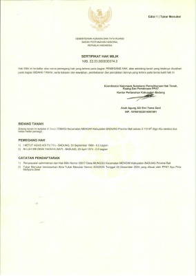 Tanah Strategis Zona Kuning di Munduk, Cemagi 2502xxxxNO.56) (@Perwira) Detail Property 1. Disewakan : Tanah di Munduk 2. Provinsi : Bali 3. Kota : Cemagi 4. Area : Munduk 5. Lebar Jalan : 6 meter 6. Luas Tanah : 600 m² 7. Air : Ada 8. Daya Listrik : Ada 9. Legalitas : SHM 10. Akses Jalan : Dua arah 11. Zona : Kuning (Permukiman) Keutamaan - Area sejuk & pegunungan Munduk - Zona kuning bisa bangun rumah/villa - Cocok untuk investasi jangka panjang - Lingkungan tenang & alami Harga Sewa Rp 350.000 / m² / tahun Rp 210.000.xxx / tahun global Nego halus
