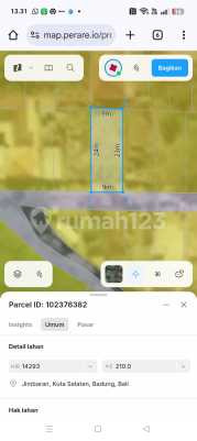 Di jual tanah murah jimbaran - Bali Lingkungan kampus Udayana & poltek Jln. Bukit hijau Gg. Kori - luas 210M² /2,10are - SHM - zona kuning - lingkungan perumahan dan kos kosan. - Kontur tanah datar siap bangun - fasilitas listrik, PDAM , wifi tersalurkan - cocok untuk hunian pribadi , kos kosan serta investasi. - 3 menit dari kampus poltek jimbaran - 4 menit ke GWK dan sidewalk mall Harga jual : 550juta / are
