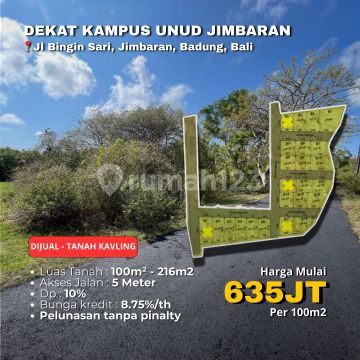 Super Exclusive - Jarang Ada! Dijual Tanah kavling Lokasi : - Jl. Bingin Sari II, Jimbaran, Kuta Selatan, Badung, Bali Spesifikasi : - LT 100 m2-216 m2 - Lahan datar - Siap bangun - Sangat cocok untuk rumah/villa - Akses jalan 5 meter Selling Point : - Kawasan tenang - Dekat Fasilitas Umum Harga Rp 635 Juta/Are (Untuk kavling A1 Harga 650jt per are) Nego - Kredit/Cash - DP 10% Informasi lebih lanjut silahkan contact Kami, WhatsApp +628xxxxxxxx +62831xxxxxxxx
