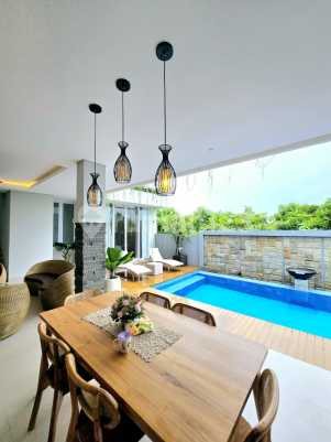 PRICE DROP !! Brand new tropical villa location Ungasan with ocean sea view Near to Sunday beach club' Near to karma kandara resot Near to savaya club' Near to melasty beach Land size 2.6 are Freehold certificate Close to Uluwatu Near Jimbaran Sidewalk Mall 7 min from karma kandara beach Carport Build in the year 2023 2.5 storey building Swimming pool 3 ensuite bedrooms Maid's room and bathroom Fully furnished IMB ready Water PDAM Electricity 7700 watts Street 4 meters wide Garden Swimming pool 7x3 Kitchen set Onegate Tv 55 in Freehold: IDR 7 Billion Lease : IDR 6.5 billion /25 years Ang