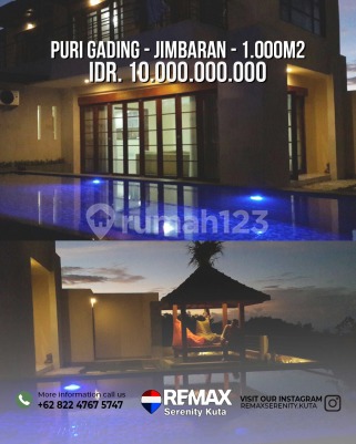 Spesifikasi : 2 lantai Shm & Imb 2015 Luas Tanah 1000 m² Luas Bangunan 400 m² Kamar Tidur : 5 Kamar Mandi : 6 Listrik 13.200 VA Ruang tamu/keluarga Gazebo/halaman luas Air sumur bor Akses jln 5 meter Hadap Utara & Selatan Garasi 1 mobil Carport 2 mobil Swimming pool dengan View pantai jimbaran dan pantai benoa Harga Rumah Rp. 10 Miliar Sekitar : - Dekat Akses Bandara. - Dekat Pusat Perbelanjaan. - Dekat Sekolah Internasional. - Dekat Sekolah Negeri. - Dekat Universitas. - Dekat Fasilitas Kesehatan. - Dekat Tempat Wisata. - Dekat Tempat Ibadah