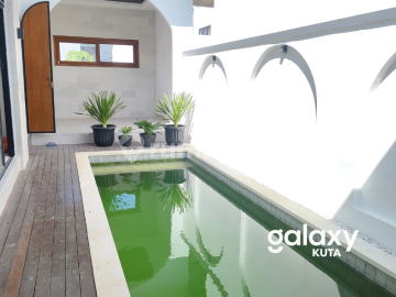 DIJUAL/SEWAKAN VILLA SEMI FURNISHED DI PURIGADING JIMBARAN BADUNG - BALI OPSI JUAL Rp. 2 M OPSI SEWA Rp. 160 JT perTAHUN, MINIMAL SEWA 1 TAHUN SHM LT : 110 M² LB : 90 M² 1 LANTAI KT : 2 KM : 2 AIR : SUMUR BOR LISTRIK : 4.400 WATT HADAP TIMUR SEMI FURNISHED AC 2 UNIT RUANG TAMU RUANG CUCI DAPUR GARASI 1 SWMMING POOL AKSES JALAN 5 METER