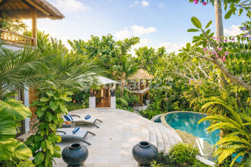 Prime Location | Large Land Area | Fully Furnished | Strong Rental Potential Set within a peaceful residential enclave near GWK Jimbaran, this elegant tropical villa offers a unique blend of privacy, ample land, and timeless architectural charm. The property provides excellent accessibility-just five minutes to Sidewalk Jimbaran Mall, dining options, supermarkets, and approximately 15 minutes to Ngurah Rai International Airport. Designed as a private garden retreat, the villa features refined tropical living with multiple pavilions, natural materials, and lush landscaping that create a tranquil resort atmosphere, ideal for both residence and rental income. Situated on 2,000 square meters of land with about 720 square meters of built area, the estate includes three spacious bedroom pavilions with outdoor bathrooms, warm hardwood finishes, alang-alang roofing, and elevated terraces overlooking verdant gardens and a freeform swimming pool. The layout includes a fully equipped kitchen, an open-plan living and dining area, office, gym or kids' playroom, massage room, wet kitchen, laundry, storage, maid's quarters, guest toilet, and a secure garage for cars and motorcycles-perfect for long-term stays or commercial rentals. The villa has a PDAM water connection, 33,000-watt electricity, was built in 2003.
