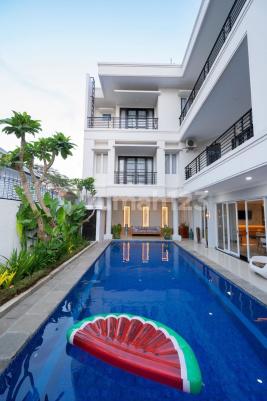 LUXURIOUS 3-STOREY FREEHOLD VILLA WITH POOL & BALCONY – JIMBARAN, BALI A grand modern villa located in the serene and exclusive area of Jimbaran. Featuring spacious interiors, private pool, and elegant finishes — perfect for a luxury residence or premium investment property in South Bali. Property Detail • SHM / Freehold • Land Size: 360 m² • Building Size: 800 m² • 3 Floors • 4 Bedrooms • 5 Bathrooms (including 1 with Bathtub) • Spacious Living Room • Modern Kitchen • Swimming Pool • Balcony with Open View • Carport • Premium Finishing & Design Location Highlights: • Peaceful Residential Area in Jimbaran • 5 min to Jimbaran Beach • 10 min to GWK Cultural Park • 15 min to Uluwatu & Balangan • 20 min to Airport Price • IDR 9 M (Freehold) C.twdz