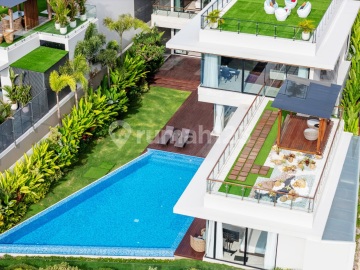 Luxury villa modern minimalist style with Stunning view breathtaking panoramic city and ocean views an unforgettable backdrop at Ungasan Jimbaran Villa With 24/7 gated security, the villa ensures peace of mind, privacy, and comfort at all times. A rare opportunity to acquire a world-class residence in Bali's golden triangle - where luxurious lifestyle, strategic location, and stunning views converge into one exclusive sanctuary. 4 minutes to road Jimbaran Uluwatu road lined with restaurant , cafe and essential amenities 5 minutes to Uluwatu mini soccer 15 minutes to Melasti Beach , Bingin beach , Pandawa beach , GWK, Taman Rama International School 20 minutes to Jimbaran beach . Kode property VS01390 Land Size: 1,000 m2 Building Size: 1,190 m2 5 bedrooms ensuite bathrooms Floors: 2 Ocean view / Beach Environment: Residential Living Room , Dining Room , Kitchen Cinema room; Balcony Terrace ,rooftop area Maid Room and bathroom Storage Guest Toilet Swimming Pool 11m × 15m Garden Security Post Fully furnished Water Source: Borehole Garage for 2 cars ---Price: IDR 45 milyar nego . more information CITRA call+wa.. 08223620xxxx instagram ********
