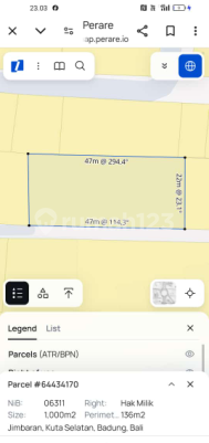 Dijual tanah di jimbaran Luas tanah : 9 are ( 900 m2 ) Lantai 2 view laut Hadap : selatan Lebar depan +/- 45 meter Itr / zona : kuning ( perumahan) Kawasan villa Lokasi : jalan gong kencana dekat kampus Unud Jimbaran Bali Harga jual Rp. 410 juta / are/100 m2 Juga Tersedia : - Lahan berupa tanah/hotel/villa/rumah/ untuk DI JUAL/DISEWAKAN dengan beberapa pilihan dan harga menyesuaikan. - Menerima referensi lahan untuk DIJUAL/DISEWAKAN berupa tanah/hotel/villa/rumah. Terimakasih