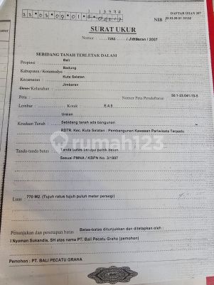 Tanah kawasan Balangan Beach jimbaran Kuta Selatan Badung Bali Jln kalpataru Luas 1231m² || 12,31 are Legalitas SHM( dua shm) Itr yellow zona Datar Hook dapat dua jalan Jalan 5 meter aspal Pdam & pln ada Hadap timur & Selatan Dimensi 64,7 m x 19 m Harga 550 juta per are
