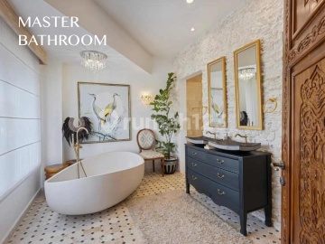 Experience timeless sophistication in this designer villa with ocean views and proven ROI, located in the prestigious area of Jimbaran, Bali. Crafted by an award-winning architectural and interior design team, this residence embodies a perfect harmony of European classicism and Balinese artistry — featuring hand-carved details, elegant chandeliers, and custom-made furnishings that create a truly one-of-a-kind ambiance. Set on 450 sqm of land with 313 sqm of living space, the villa offers four bedrooms, including a children’s room, a home office, and spacious living areas that flow seamlessly to a private pool with sunken lounge and BBQ area. Fully furnished and ready to operate, this turnkey property ensures both comfort and profitability. Backed by a professional management company with over a decade of experience in Bali, the villa boasts strong occupancy rates and consistent returns. Offering award-winning design, premium location, and proven income performance, this property presents a rare opportunity to own a piece of Bali’s luxury lifestyle — where beauty, function, and investment meet.
