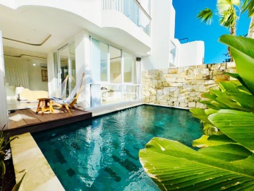 For sale Villa baru modern mediteranean style di Ungasan Jimbaran 10 menit ke pantai melasti 15 menit ke pantai pandawa . Kode property VS01340 . - Land 130 sqm -Building size 180m2 - 3 Bedrooms and 3 Bathrooms - 1 Guest Toilet - 2 levels villa with ocean View - Fully furnished - Enclosed Living room - Enclosed kitchen & dining area - Private parking area fits for car & bikes - Swimming pool ---PRICE : IDR 4,5 milyar Negotiable . more information CITRA call+wa..0822xxxxxxxx instagram ********
