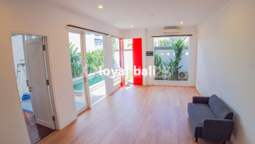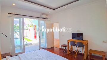 Cozy house in a convenient location in Bali. Aesthetic facade with pool in front of it. Inside, it has a spacious and cool tone. One bedroom on the first floor and two bedrooms on the second floor, which each soothing. 7-minutes to Bali airport. This house is perfect for those seeking a quiet and relaxing holiday. Land Size : 170m² Building Size : 150m² Title : Freehold (SHM) Face House : North Year build : 2022 Bedroom : 3 + 1 Bathroom : 3 + 1 Feature: AC Swimming pool Garden Fully furnished Guest room Maid room Rooftop Kitchen Water heater 6.600 watts electricity PDAM water Detail: Asphalt access Sale Price: IDR 410000xxxxTANPA PERANTARA / NO BROKER)