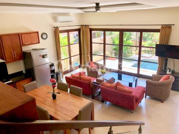 Villa available for rent in early August 2025 Land area: 360 m² Building area: 550 m² Electricity: 7700 watt Water: PDAM Road access : 4 meter Certificate: SHM / Rooms: 3 ensuite Bathrooms: 4 Maid room 1 Laundry room Carport for 2 cars Facing: North Excluding: pool service gardening housekeeping Garbage disposal fee Banjar fee Internet Cable TV (Indovision) Annual rental price Idr 450jt