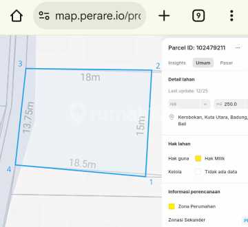 DI JUAL TANAH MURAH LUASAN KECIL *LOKASI BANJAR ANYAR KAJE KEROBOKAN KUTA UTARA BADUNG* *LUAS TANAH 2,5 ARE* - SHM - ZONA KUNING - COCOK UNTUK VILLA / RUMAH TINGGAL - AKSES JALAN 4 M Hrga global 2,3M