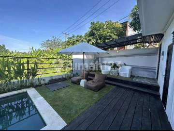 For sale on 10 years lease until 11 February 2035 Stylish Villa in Canggu with Green View perfect property for living or rental. Features: First floor: Spacious living and dining area with kitchen and a guest toilet. Second floor: 1 Master bedroom with enuite bathroom and 1 twinbed room. Private pool Mini garden Outdoor lounge for BBQ or relaxing Storage Parking area Electricity 4400 Watt Deep well water supply Furnished Further information contact Agung Bagus