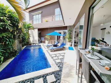 Kesambi - Kerobokan Built to Western standards, overseen by Australians, our villa presents as a solid investment and a quality build. MODERN | CONTEMPORARY | FULLY FURNISHED FREEHOLD | SHM | IMB Details: - Land: 2.46 Are - Building: 244m2 - Year Built: 2011 - Fully Furnished - Bedrooms: 3 - Bathrooms: 3 - Enclosed Living - Two Levels - Greenbelt rice field views - Open Dining/Kitchen - Living Room - Storage/Cleaners room Facilities: - Private Pool 7 x 2.3 meters - Upper- level roof top terrace - Balcony - Gazebo/Jogolo - Air Conditioner x 3 - Large Electric Power 7.700 watt - Water Source: Well (FILTERED) - Carport, Secure Parking - Internet/CCTV - Full lock up facility PRICE is IDR 4.9 Billions, Negotiable.