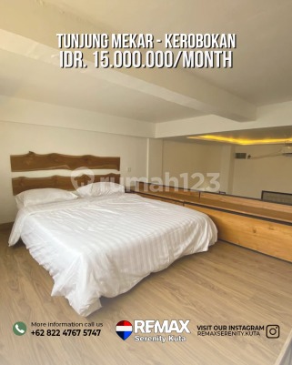 Features: * 1 AC bedroom * Spacious living room with Smart TV * Fully equipped kitchen * Indoor bathroom with dreamy outdoor bathtub Included: Cleaning twice a week, linen change, fast WiFi, banjar and rubbish fees. Not included: electricity, water, gas, personal laundry. Price: IDR 15.000.000 per month Discounts available for long-term stays or upfront payment. No pets and no parties.