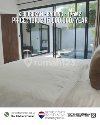 Property Details: - Land size: 175 sqm - 2 Bedrooms (ensuite bathrooms) - Enclosed living & dining area - Fully furnished - Fully equipped modern kitchen - Private swimming pool - Bright interiors with pool access - Parking space Price IDR 215 Million / Year Minimum 2 Years Rental