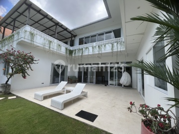 LEASEHOLD – MODERN TROPICAL FAMILY HOME IN BUMBAK DAUH, KEROBOKAN This elegant two-storey white villa offers the perfect blend of modern design and tropical charm, nestled in a peaceful residential area of Bumbak Dauh, Kerobokan Kelod, Kuta Utara. With its spacious layout and lush green surroundings, Villa Putih is ideal for families or anyone seeking comfort and style in Bali. Property Details: • Land Size: 623 m² • Building Size: ±450 m² • Bedrooms: 5 en-suite bathrooms • Additional Studio/Office: With en-suite bathroom and kitchenette, located in the garden beside the pool • Technical Room/Storage: Under the office, next to the pool • Outdoor Spaces: • Large terrace on the ground floor • Spacious patio on the upper floor • Storage: 2 clean storage spaces in the main villa • Living Areas: Open-plan living room, dining area, and modern kitchen on the ground floor • Entertainment: TV room on the upper floor • Guest Facilities: Guest toilet on the first floor • Security: Security post with toilet at the parking area • Garage: Fits 1 large car • Staff Quarters: Room with bathroom and kitchenette above the garage, accessible from outside • Parking: Fits 1 city car and up to 5 motorbikes/scooters • Swimming Pool: 14 x 4.5 meters • Electricity: 3 x 7,700 Watts • Garden: Large tropical landscaped garden Legal & Lease Information: • Lease Period: 25 years (until March 2051) • Extension Option: Available for another 20 years (on land value only, stated in the lease agreement)