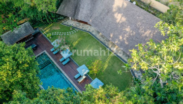 Tucked away amidst the rice paddies of Kerobokan, This villa is a fully-staffed private mansion stretching on 2800-meter square land. With 7 spacious bedrooms across the Joglo-themed pavilions, this island home accommodates large groups. The setting is characterised with its darkly stained wooden panels, hovering stairs, sleek contemporary and alfresco design. The golden-lit spaces oversee the glistening 25-meter private pool and freshly manicured lawn. Features: Land size: 2800 m2 25-meter private pool Freshly manicured lawn 7 spacious bedrooms Open plan living room Kitchen Tropical-jungle feeling at the heart of Kerobokan