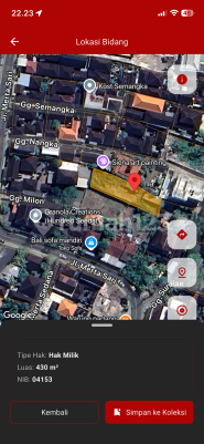 Di jual tanah 5,9 are di mertasari Kerobokan. Bisa ukuran kecil 1,8 are. Hanya 5 menit ke Seminyak Cocok buat di bangun villa Harga 1,050 Milliar/are