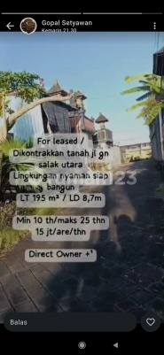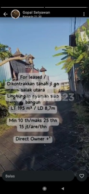 Tanah sewa kerobokan luas 1,95 are harga 15 jt per are SHM PBB zona Kuning dko gopal